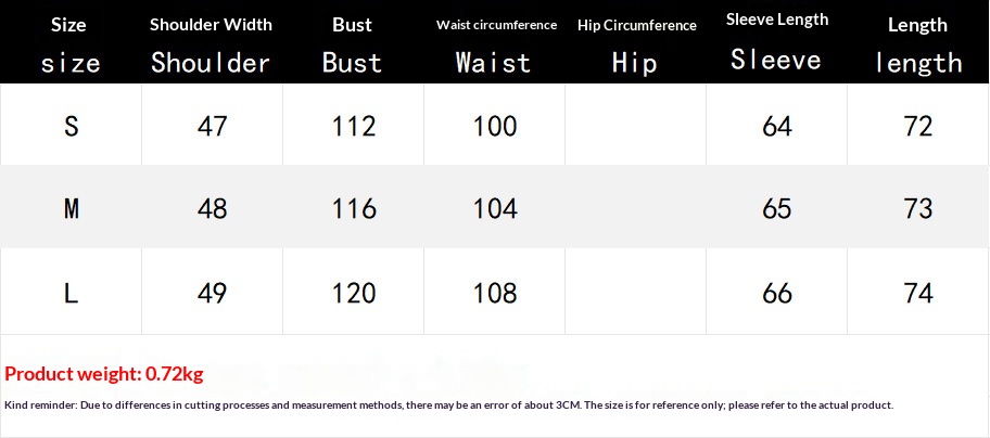 Note:1. Asian sizes are 1 to 2 sizes smaller than European and American people. Choose the larger size if you're between two sizes. Please allow 2-3cm differences due to manual measurement. 2. Please check the size chart carefully before you buy the item, if you don't know how to choose size, please contact our customer service.